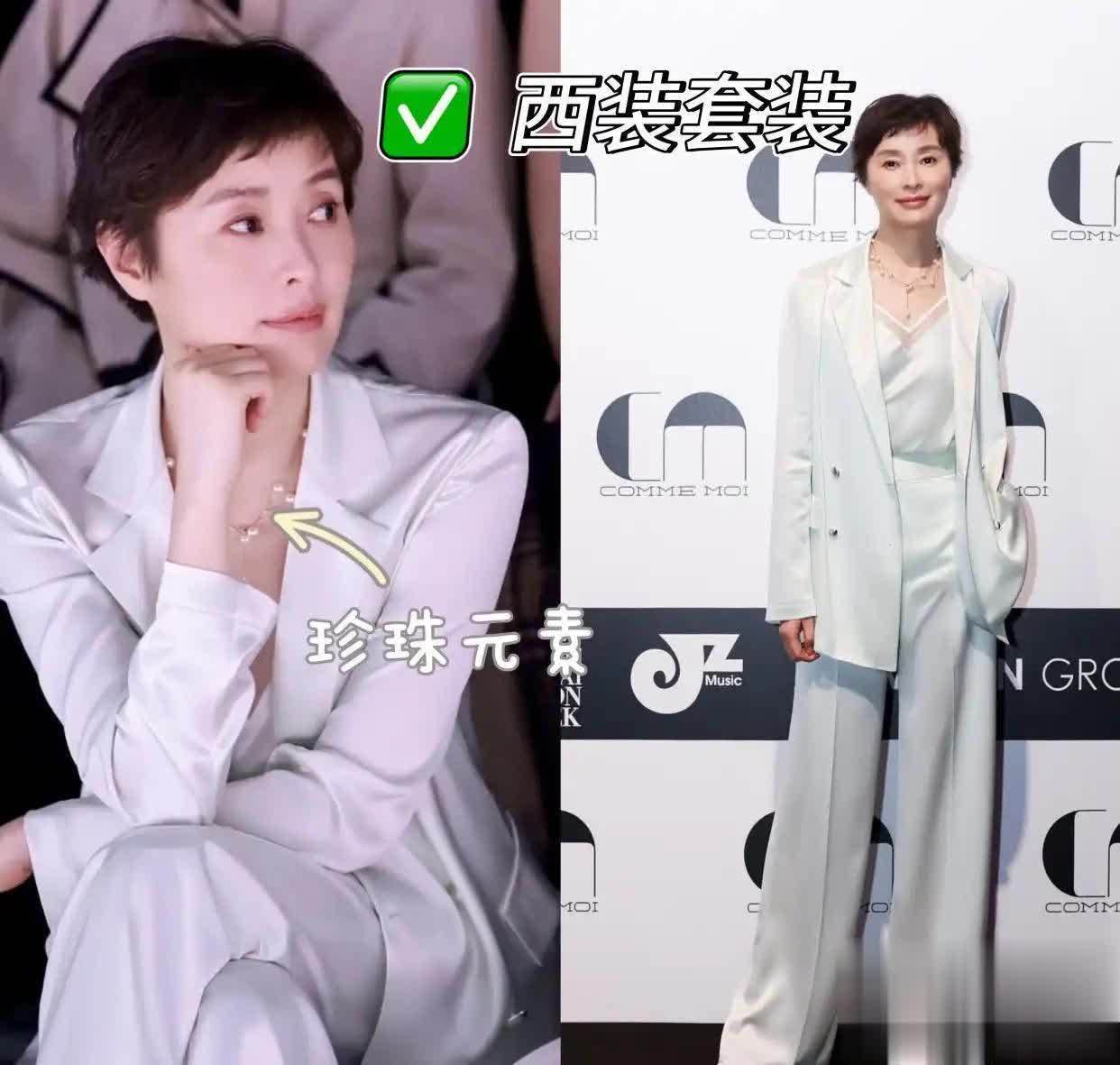 吴越经典的假小子发型,十分适合职场女性。她在这款发型基础上,挑选剪裁合身的西装套装,搭配简约设计的珍珠项链,既展现出精致感,又不会过于张扬,与发型的慵懒感相互映衬。